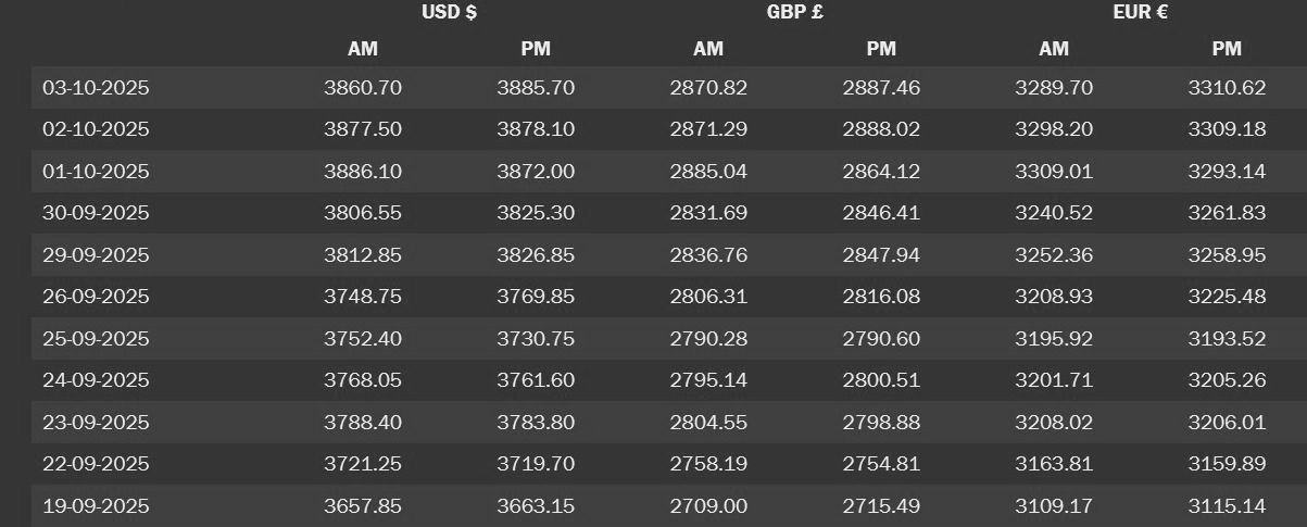 LBMA Gold Prices